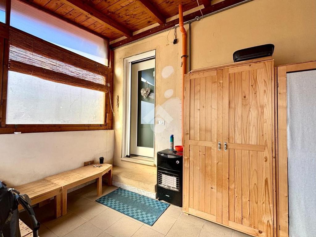 La zona giorno è arricchita da una stufa a legna.